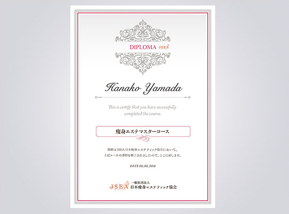 ダイエットのプロと専門サロンに協会規定の講座カリキュラムを受講し、修了した方には、痩身ダイエットのプロである修了証を取得。サロンワークで新しい技術提供ができます。またサロン様には、認定講師が在籍する痩身専門の認定サロンを取得できます。